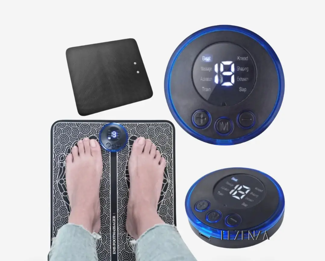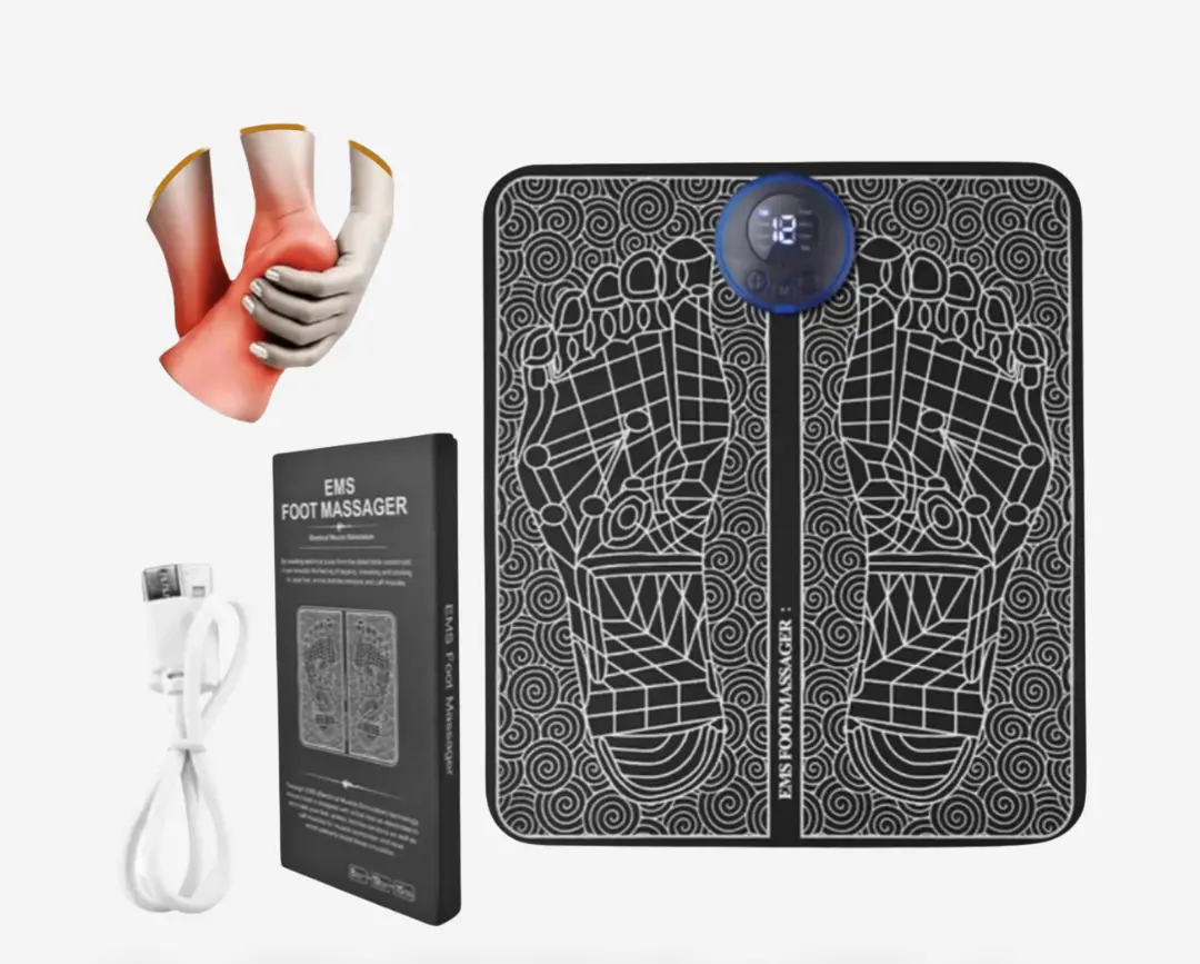Alivio y bienestar en solo 15 minutos con el Masajeador de Pies EMS. Ideal para tratar fascitis plantar, tendinitis o simplemente relajar tus pies cansados.
