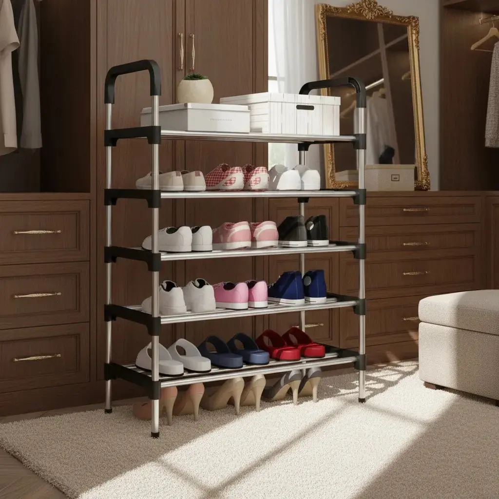 Con este rack de 6 pisos, tu calzado estará siempre ordenado, accesible y protegido, dándole un toque de organización y estilo a tu hogar.